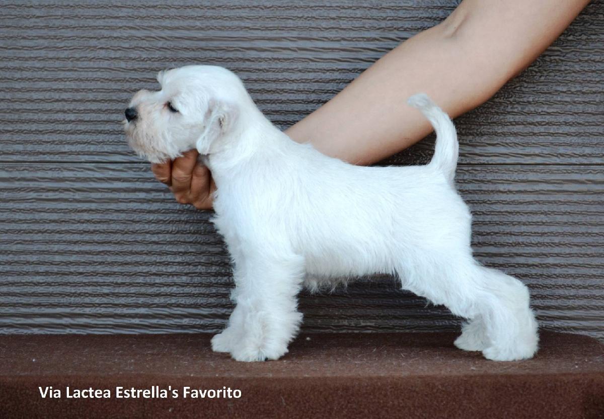 J BY CH, J POL CH, J SLO CH, J UKR CH Estrella's Favorito Happy Winter's Tail Blanco