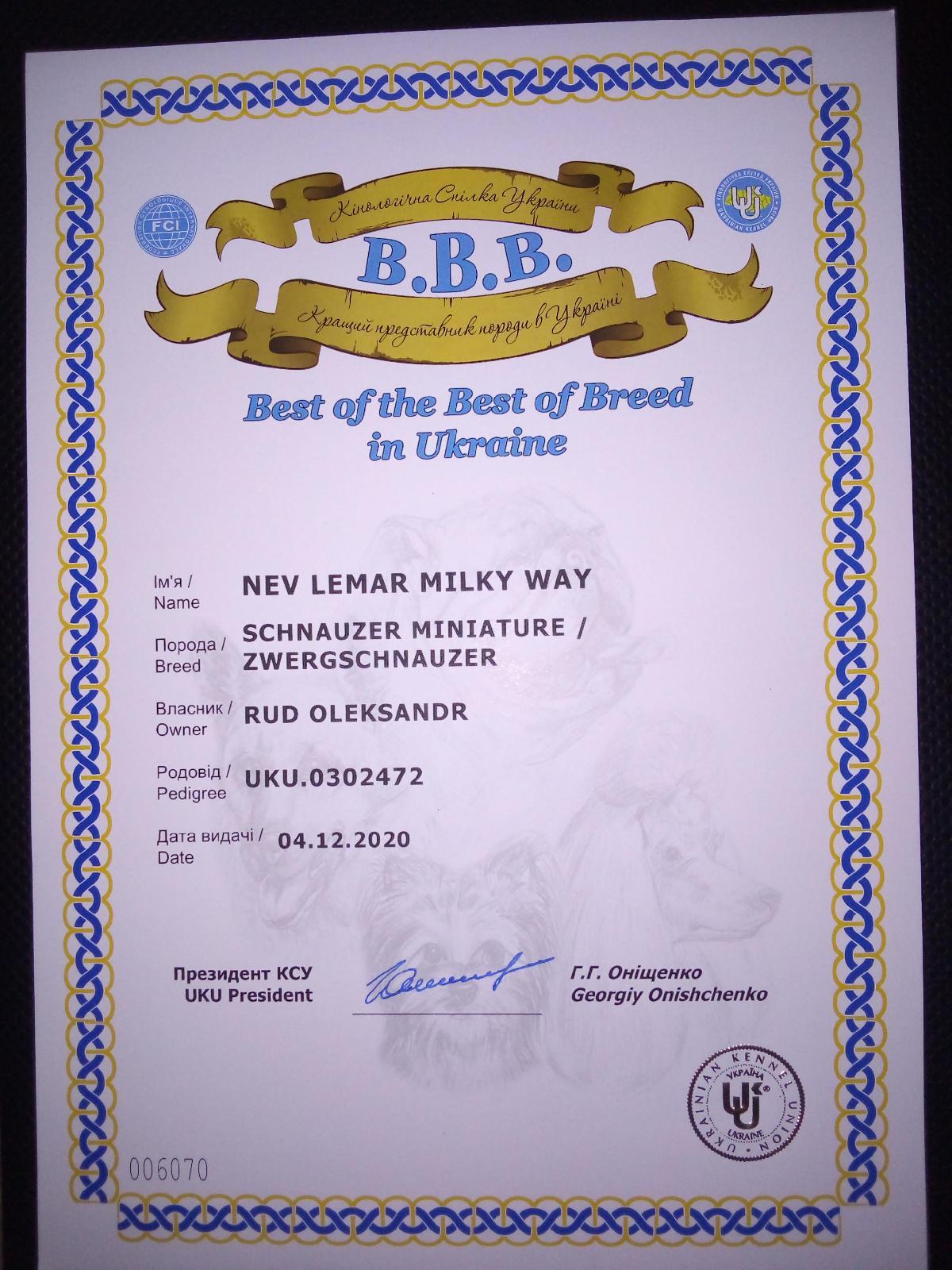 Лучший представитель породы в Украине-В.В.В.